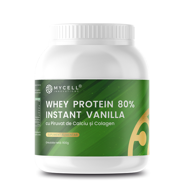 - Concentrat proteic din zer instant – proteine cu valoare biologică ridicată, bogat în BCAA și lactoferină; sprijină sinteza proteică și imunitatea.